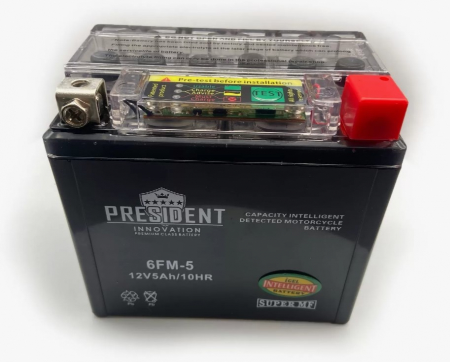 АКБ МОТО PRESIDENT 12V 5 A/h 6FM-5 (113*70*107) IGEL кнопочная индикация (10шт)