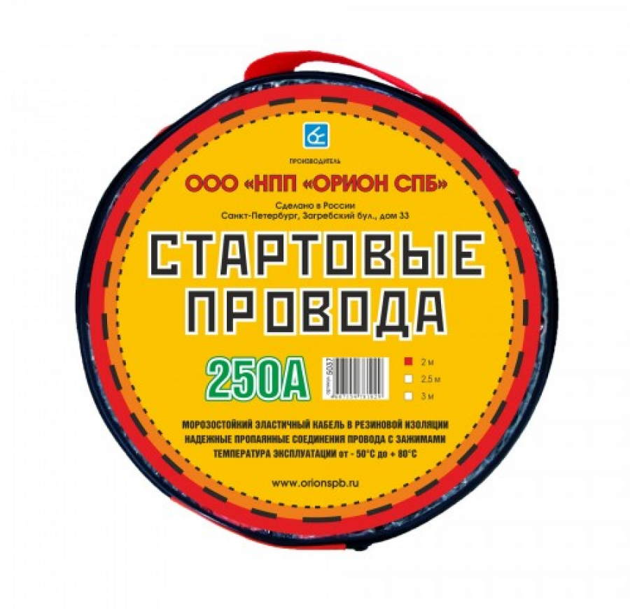 Стартовые провода "Вымпел" 250А, 2м, хладостойкие (в сумке)