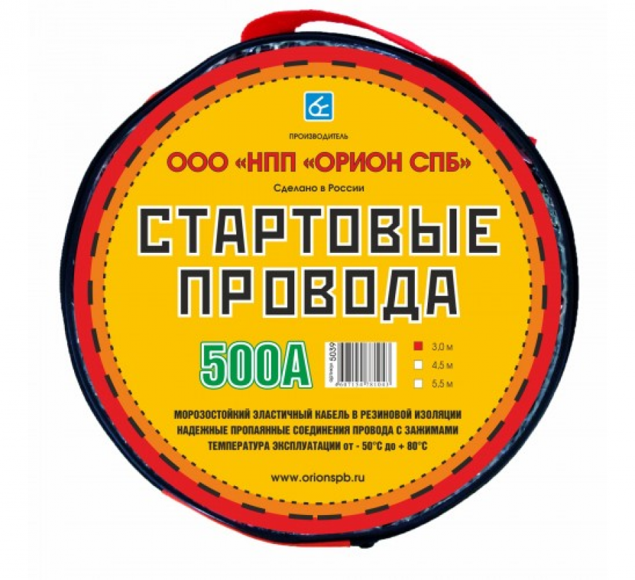 Стартовые провода "Вымпел" 500А, 3м, хладостойкие (в сумке)