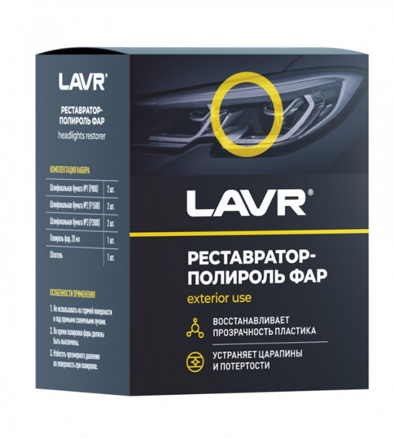 LAVR 1468 Реставратор фар "+полироль" 20мл (20 в уп)