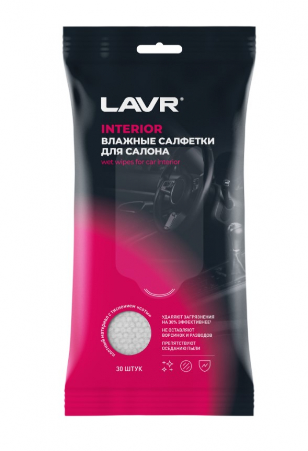 LAVR 1785 Влажные салфетки для салона 30шт (28 в уп)