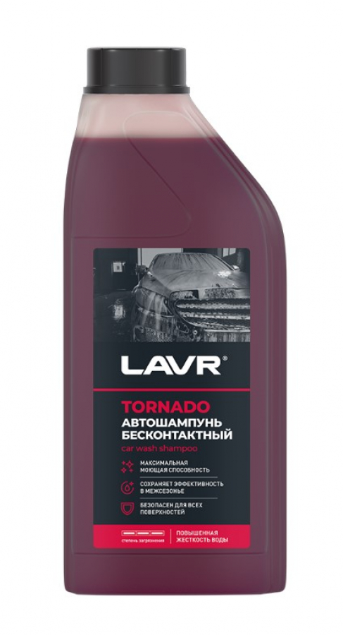 LAVR 2341 Автошампунь для бесконт.мойки "TORNADO" концентрат для жесткой воды 9.8 (1:60-1:160) 1,3кг